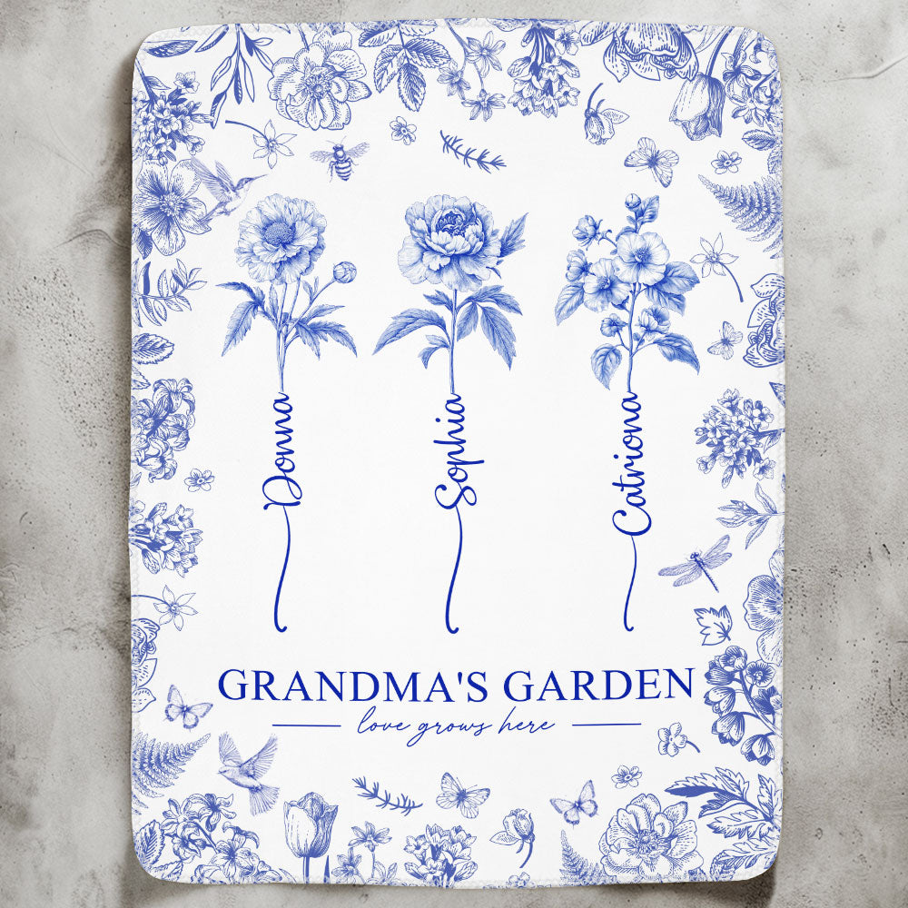 Grandma's Garden - Custom Kids Birth Flower Toile De Jouy - Personalized Blanket Big Size