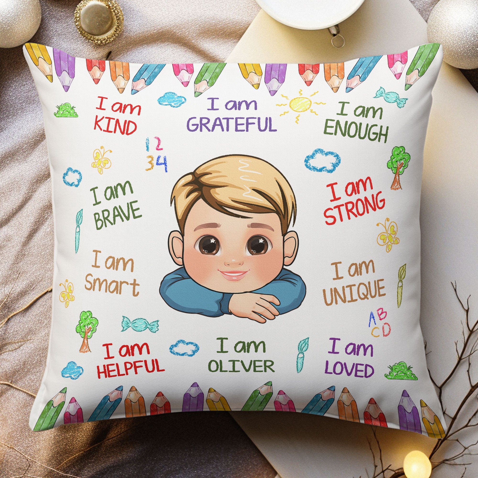 Customized with their name, this heartwarming pillow becomes a personalized haven, instilling a sense of belonging and self-worth. These affirmations make for perfect bedtime companions, gently reminding them of their inner strength and uniqueness.